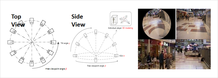 - 방송, 전시, 공연, 스포츠 등과 같은 다양한 분야에서 실감 시청 체험을 극대화할 수 있도록 자유시점 영상 표출에 필요한 최소 파라미터 제안.
