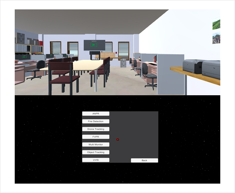 - HMD를 쓰고 각 책상에 배치된 모니터를 2초 이상 응시하면 각 연구원의 소개 영상이 360도 영상으로 나오도록 구현.
