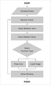 - Kinect를 이용하여 사용자의 골격 좌표를 인식하고, 왼손과 오른손의 움직임에 따라 색칠하기, 스탬프 찍기와 같은 인터랙티브한 표현이 가능한 프로그램 개발함으로써 사용자의 흥미 유발 및 엔터테인먼트적 요소 제공.