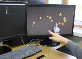 - Leap Motion을 이용하여 사용자 손의 검지 제스처(circle)에 의해 선택된 오브젝트마다 직접 촬영한 동영상(동적 콘텐츠)를 사용자에게 제공하는 유아용 교육 프로그램을 구현.